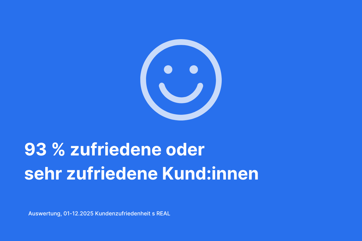 93 % unserer Kund:innen sind mit unseren Serviceleistungen zufrieden oder sogar sehr zufrieden. Wir legen großen Wert auf eine umfangreiche Beratung und gehen auf individuelle Wünsche unserer Kund:innen ein.